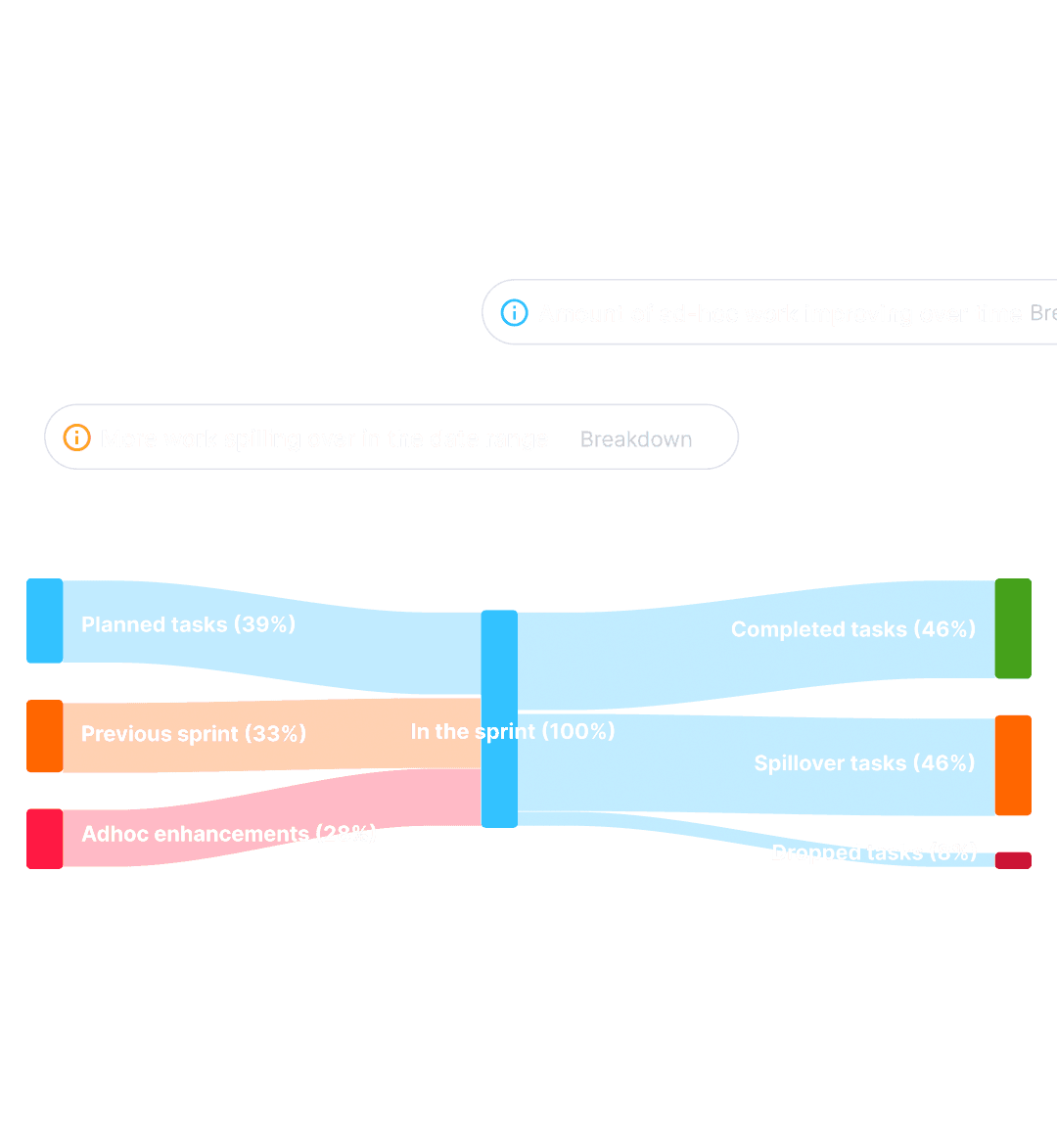 Drive productivity in engineering flow by bringing visibility to what’s blocked, spilled, or dropped across sprints — so you can clear the way for delivery and lead your team strategically.
